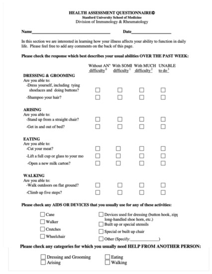 3.3. Health Assessment Questionnaire Results