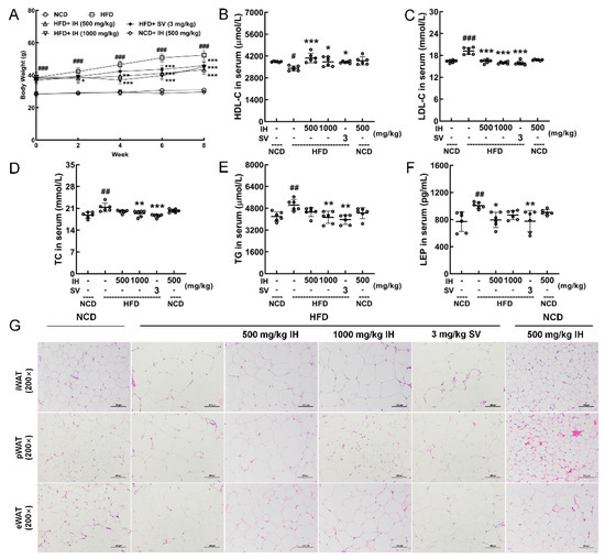 3.2. Hypolipidemic Effects of IH in HFD-Fed Mice