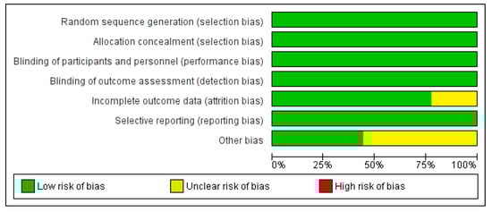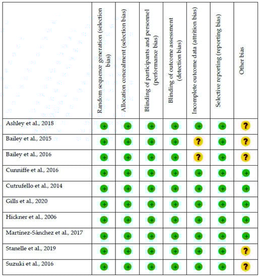 indicates an unknown risk of bias [43,44,45,48,49,56,57,58,59,60].