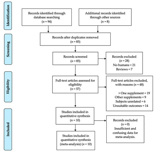 | Study design | Randomized, double-blind, crossover, and placebo-controlled | 10 studies [43,44,45,48,49,56,57,58,59,60] | |