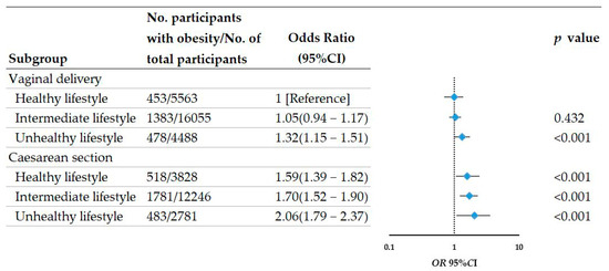 Chicago/Turabian StyleLian, Rong, Zheng-He Wang, Zhi-Yong Zou, Yan-Hui Dong, Yi-De Yang, and Jun Ma. 2022. "Does a Healthy Lifestyle Lower the Elevated Risk of Obesity Caused by Caesarian Section Delivery in Children and Adolescents?" Nutrients 14, no. 17: 3528. https://doi.org/10.3390/nu14173528