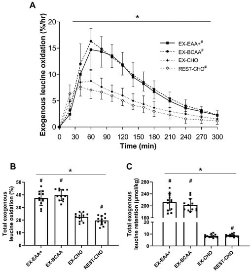 - Reckman, G.A.R.; Navis, G.J.; Krijnen, W.P.; Vonk, R.J.; Jager-Wittenaar, H.; van der Schans, C.P. Aerobic exercise increases post-exercise exogenous protein oxidation in healthy young males. PLoS ONE 2019, 14, e0225803. [Google Scholar] [CrossRef]