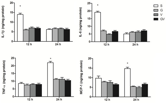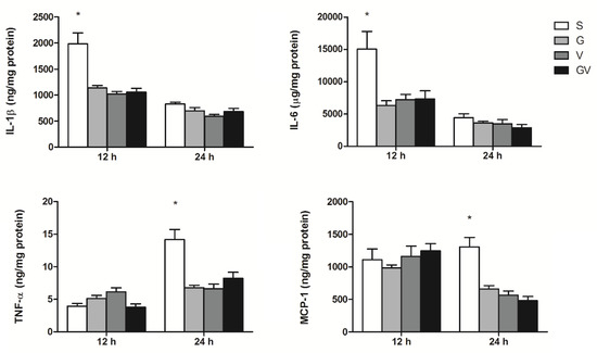 3.3. Inflammatory Mediator Concentrations in Intestinal Tissues