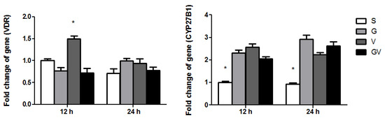 3.4. VDR and CYP27B1 Gene Expressions in the Ileum