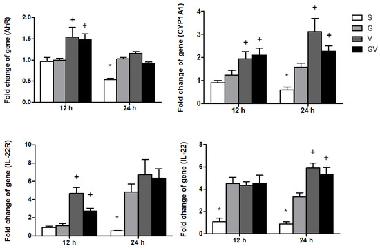 3.6. AhR-Associated Gene Expression in Ileum Tissues