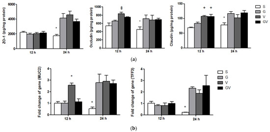 3.7. Expressions of TJ Protein Levels and Mucosal Repair Genes in the Ileum