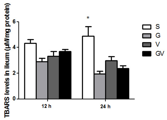 3.8. Lipid Peroxide Concentrations in the Ileum