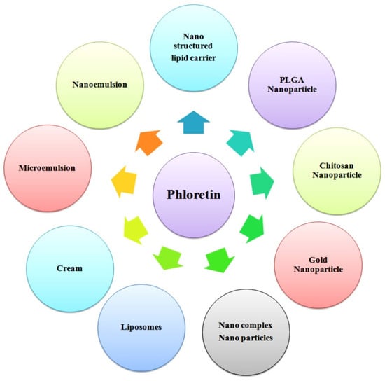 To further enhance the solubility, several researchers synthesized the derivatives of phloretin. The details are already discussed in the previous section, i.e., the development of analogs of phloretin. Similarly, to improve the absorption and bioavailability of phloretin, researchers developed various formulations such as self-nanoemulsion, nanoparticles, liposomes, and microemulsions. A thorough explanation of these approaches is elaborated in the following section, i.e., pharmaceutical development of phloretin.