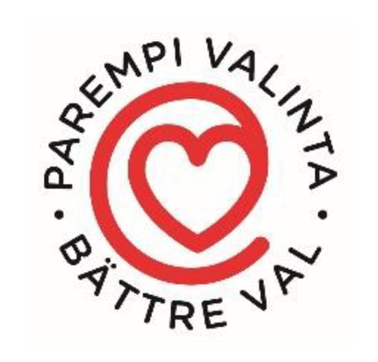 The Heart symbol with the text “better choice” in Finnish and Swedish. Image reproduced with the permission of the Finnish Heart Association.