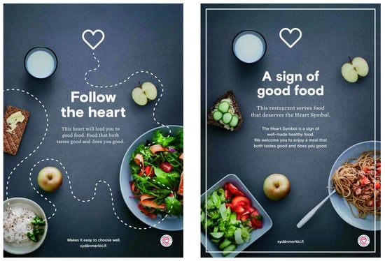 Posters that primed customers to notice and choose Heart-labelled foods. Original posters were in Finnish. Images reproduced with the permission of the Finnish Heart Association.