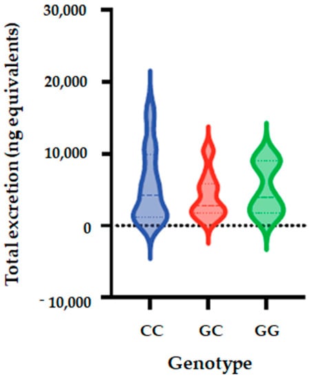 45]. These finding can therefore be corroborated with our finding that we observed a significant association between the GGCC and GCTG haplotypes for ABCC2_rs8187710/SULT1A1_rs3760091/SULT1A1_rs4788068/SULT1C4_rs1402467 with phenotype high excretors (