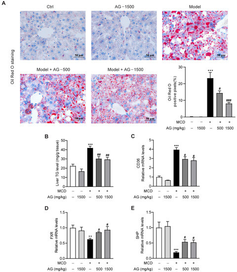 3.2. Ala-Gln Ameliorates MCD-Induced Hepatic Lipid Accumulation by Regulating CD36 and FXR Expression