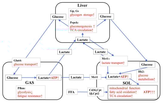 4.3. KPE Has the Potential to Improve Energy Metabolism and Substrate Utilization between Skeletal Muscle and Liver