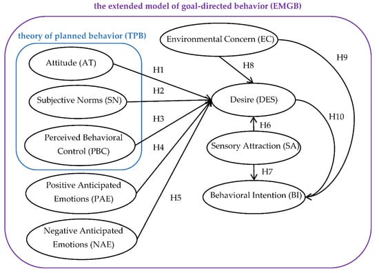Furthermore, Lee et al. [74] and Song et al. [67] found that desire plays a key mediating role between the dimensions of MGB (e.g., attitudes, subjective norm, perceived behavioral control, positive anticipated emotions or negative anticipated emotions) and behavioral intentions. Accordingly, H10 is proposed as follows.
