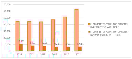 | F. Hyperproteic normocaloric polymeric completes. With fibre. Adults | 2.773 | 2.843 | 3.159 | 3.192 | 3.100 | 3.867 |