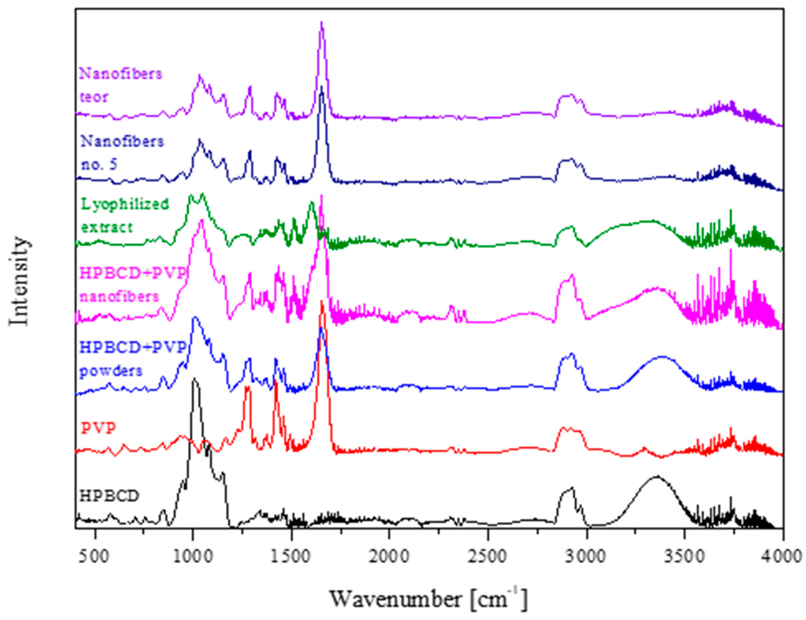 | Sample | PVP | HPβCD | Lyophilized Extract | Nanofiber HPBCD-PVP | Nanofiber no. 5 |