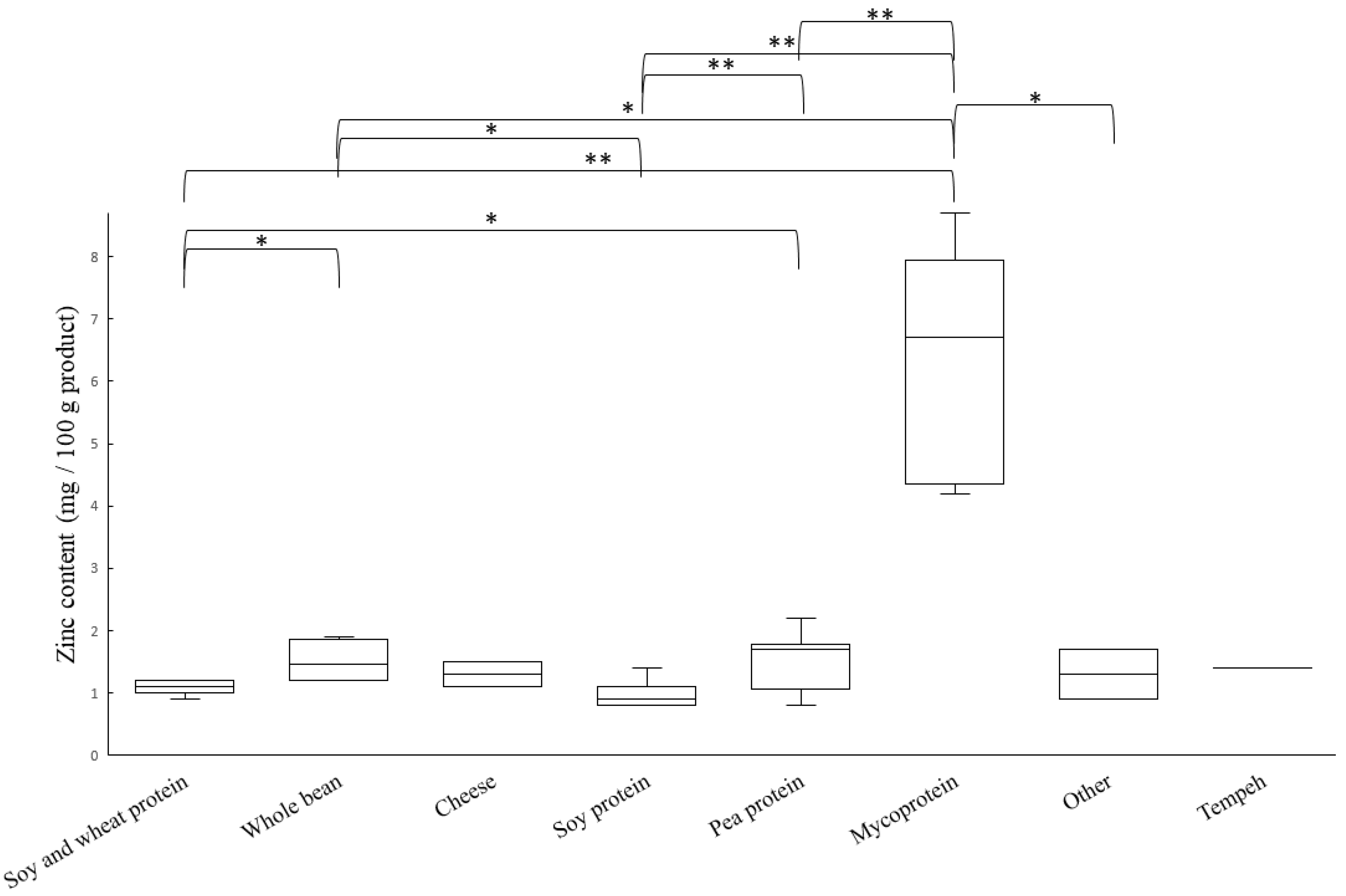 | 6 | Mycoprotein, n = 5 | 8.5 (7.4–9.8) |