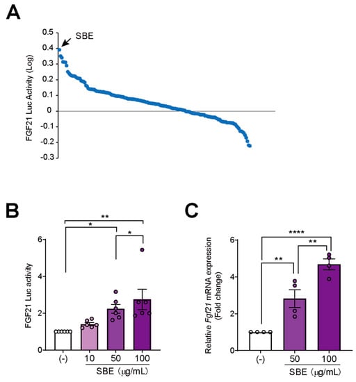 3.1. Cell-Based Screening Using a Natural Medicine Library Identified That SBE Induced Fgf21 Expression