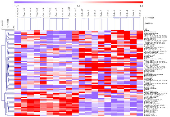 Heat map analysis of differential metabolites in T2D db/db mice. (Control 1–10 represents Table 1. Model represents the model group).