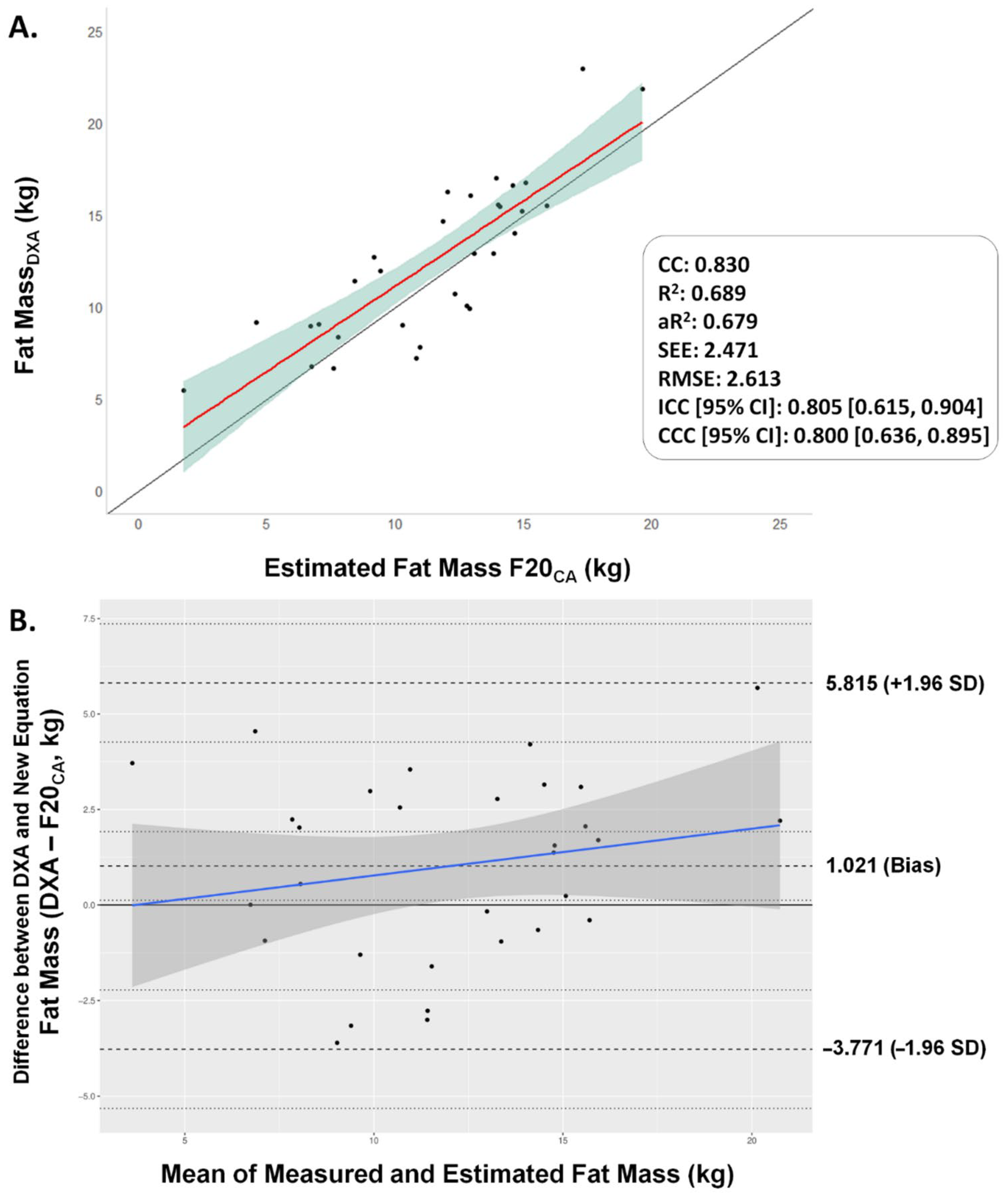 - Estimate fat mass with the F20CA as: FM (kg) = 5.46 ∗ (Sex) + 0.21 ∗ (BM/W [kg/m]) + 81.7 ∗ (W/Stature [cm/cm]) − 41.8, where sex is zero for men and one for women.