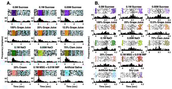 - Sammons, J.D.; Weiss, M.S.; Victor, J.D.; Di Lorenzo, P.M. Taste coding of complex naturalistic taste stimuli and traditional taste stimuli in the parabrachial pons of the awake, freely licking rat. J. Neurophysiol. 2016, 116, 171–182. [Google Scholar] [CrossRef]