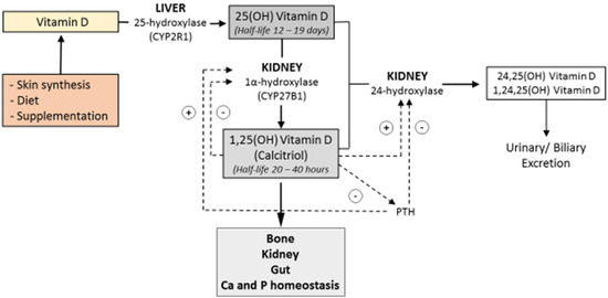 - Prosser, D.E.; Jones, G. Enzymes involved in the activation and inactivation of vitamin D. Trends Biochem. Sci. 2004, 29, 664–673. [Google Scholar] [CrossRef]