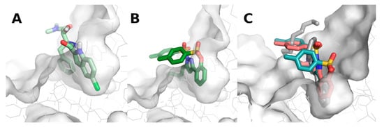 To assess protein–ligand interactions, the top docking poses were submitted to the detection of residue contacts using the docker implementation of PLIP []. Images of the compounds and the PDB structures were produced using PyMOL v.1.8.4.0 []. Data plots were produced using seaborn, and compound structures were handled and analyzed using BioPandas, fconv, and RDKit. Docking results were handled and trends were analyzed using a Jupyter Notebook workflow.