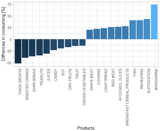 | Product | Differences (%) | p-Value |