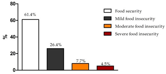 Food insecurity exists when there is deprivation or uncertainty about access to quality food in enough quantity to live an active and healthy life [1]. It is associated with several chronic diseases, poor mental health, and poor diet quality [2,3,4,5] and remains an important public and social health problem in countries with different levels of economic development, which were accentuated by the effects COVID-19 pandemic [6].