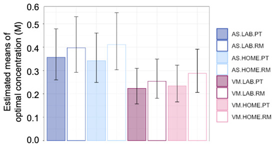 3.2.2. Mean Values of Optimal Concentration
