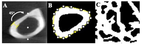- Bouxsein, M.L.; Boyd, S.K.; Christiansen, B.A.; Guldberg, R.E.; Jepsen, K.J.; Müller, R. Guidelines for assessment of bone microstructure in rodents using micro-computed tomography. J. Bone Miner. Res. 2010, 25, 1468–1486. [Google Scholar] [CrossRef] [PubMed]
