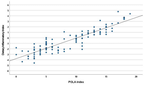 Correlations between the DII and POLA index (r = 0.90; p < 0.0001).