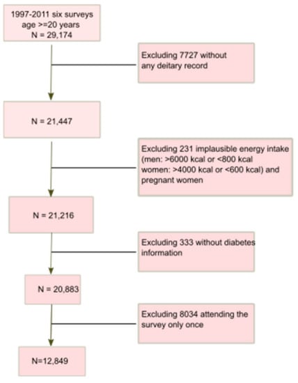 - Popkin, B.M.; Du, S.; Zhai, F.; Zhang, B. Cohort Profile: The China Health and Nutrition Survey--monitoring and understanding socio-economic and health change in China, 1989–2011. Int. J. Epidemiol. 2010, 39, 1435–1440. [Google Scholar] [CrossRef]