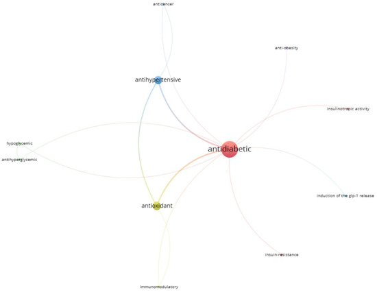 Other groups of keywords were ‘antioxidant, and antioxidant activity’ (occurrence 11); and ‘ACE, ACE inhibition, and angiotensin-converting enzyme’ (occurrence 7). These latter keywords appeared very frequently, owing to the multifunctionality of many bioactive peptides, which, in addition to acting as antidiabetic agents, may present other bioactivities, e.g., antioxidant and hypotensive capacities. Other keywords also frequently appeared among the selected articles and their occurrence was mostly related to peptide bioactivities; the methods used to identify these peptides; the diseases that might be suppressed/treated by their use; and the proteins used as a substrate to obtain the hydrolysates.