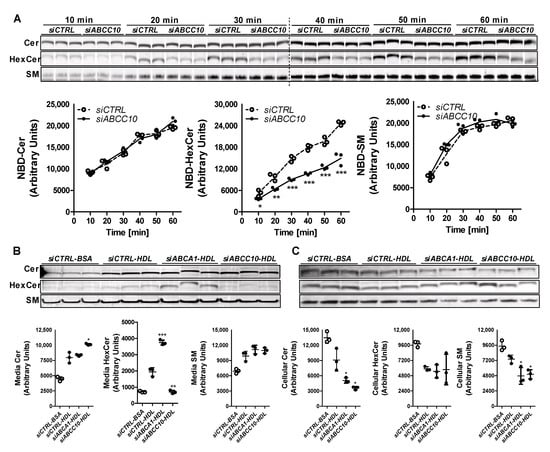 2.5. Dose Response Effect of siABCC10 on HexCer Export and Synthesis