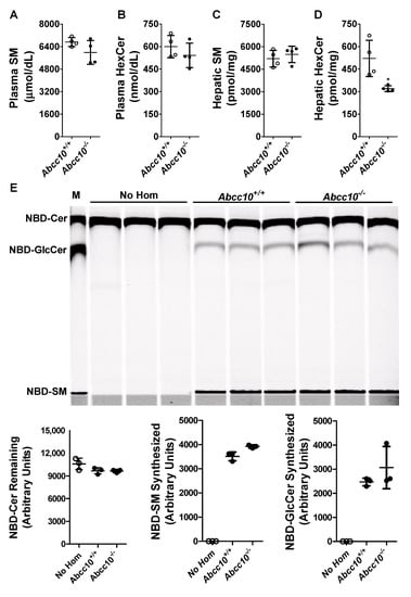 Iqbal, J.; Walsh, M.T.; Hussain, M.M. ATP-Binding Cassette Transporter Family C Protein 10 Participates in the Synthesis and Efflux of Hexosylceramides in Liver Cells. Nutrients 2022, 14, 4401. https://doi.org/10.3390/nu14204401