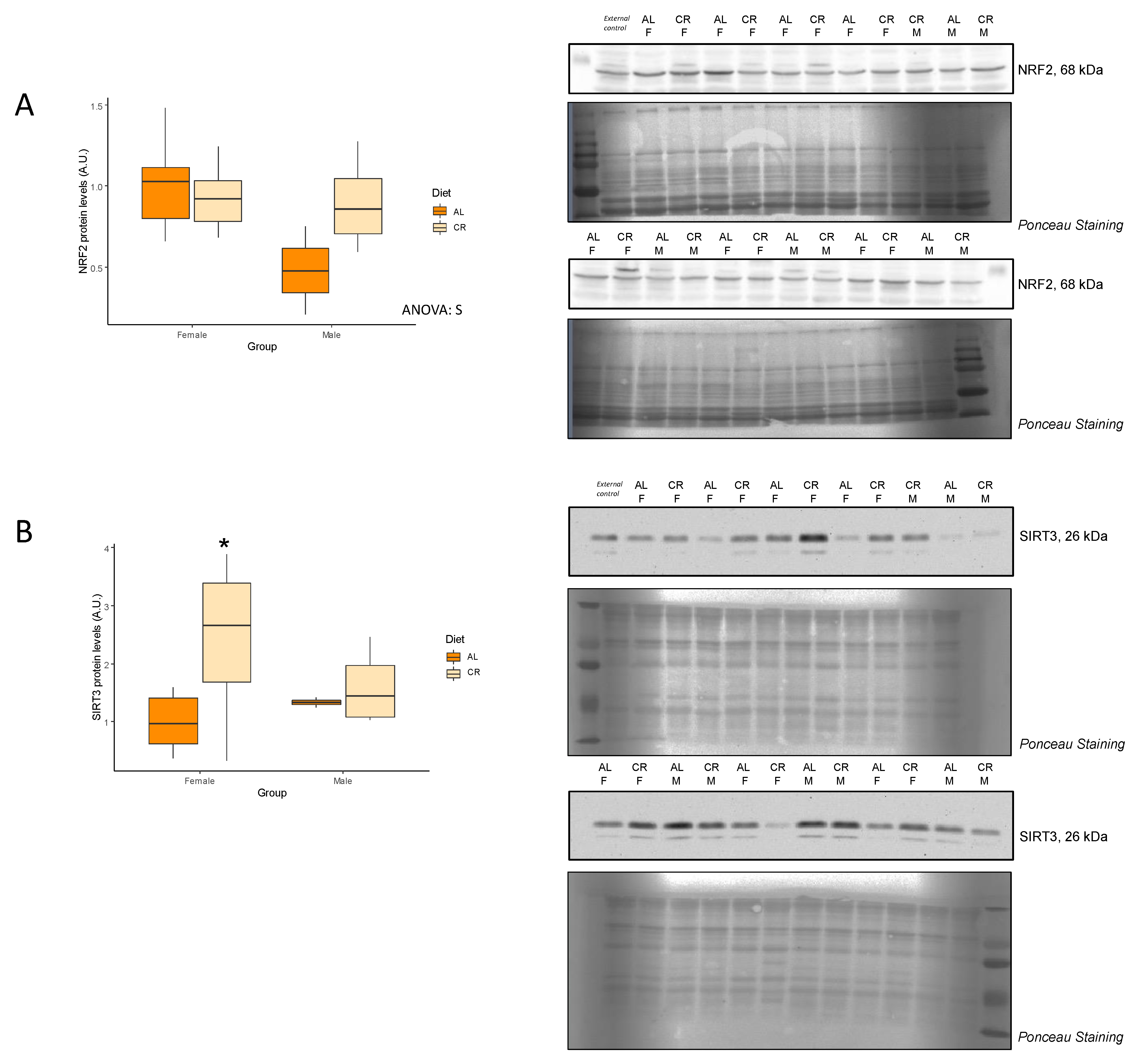 | NRF2 (A.u.) | 1.00 ± 0.10 | 0.93 ± 0.07 | 0.27 | 0.48 ± 0.27 | 0.90 ± 0.15 | 0.10 | S |