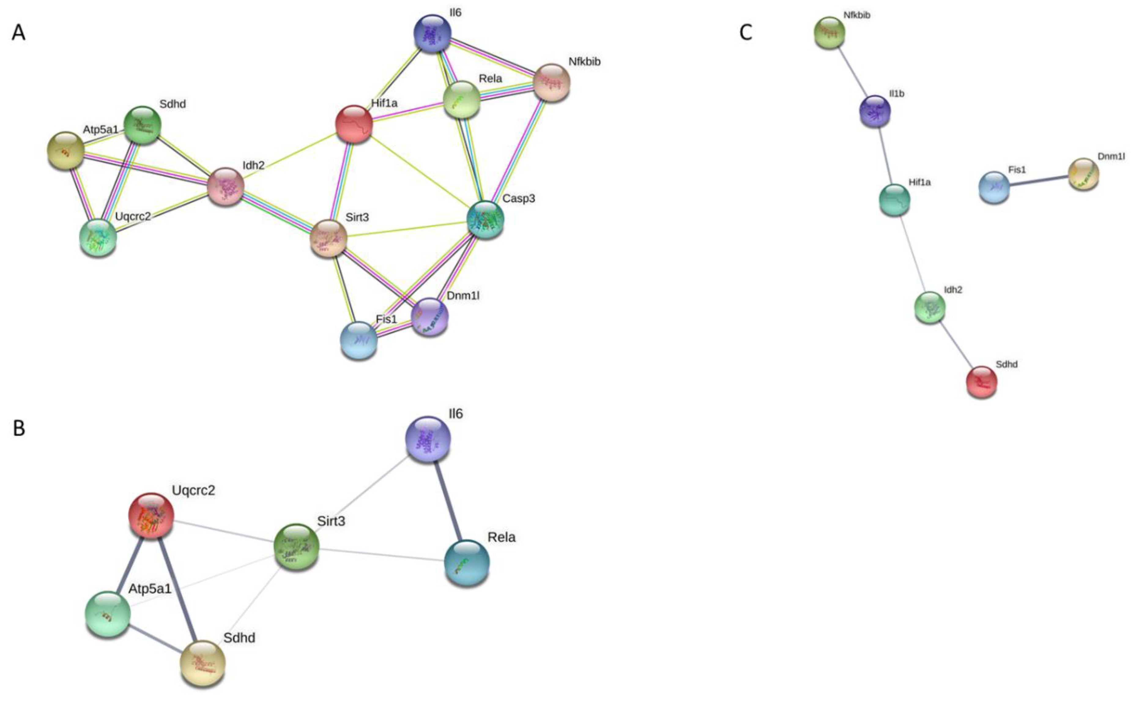 | Sirt3 | −0.21 ± 0.13 | 0.15 | −0.16 ± 0.04 | 0.17 | NS |