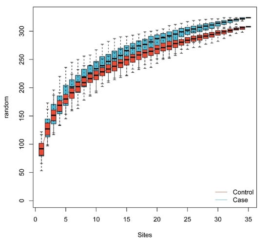 Means ± standard deviations and medians were used for statistical description. Matched t-tests, ANOVA, and nonparametric tests were used for statistical inference. All the statistical analyses were two-tail tests, and p < 0.05 indicated statistical significance. Rarefaction analysis was performed to assess the species richness in the controls and cases by vegan package in R software. Alpha diversity indices were estimated using the vegan package (Version 2.5-7) in R software (Version 4.0.2) based on the species profile. A principal coordinates analysis (PCoA) was executed using the ade4 package (Version 5.5) in R software. A non-metric multidimensional scaling (NMDS) analysis was performed using the vegan package in R software. Differential abundance of microorganisms and functional modules was tested using MaAsLin2 [] (Version 1.2.0). Only features existing in at least 10% of subjects were considered in the analyses. Correlation analyses were tested using Spearman’s correlation with the psych package (Version 2.1.9) in R software.