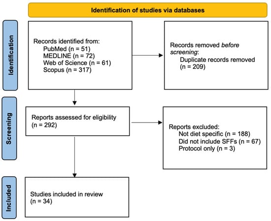 Studies that met the following criteria were included in this review: (1) study population must include SFFs; (2) study must investigate diet or diet intervention among SFFs; (3) study must have reported results specific to SFFs; and (4) study must be published in the English language.