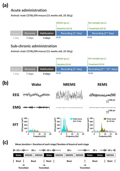 Chicago/Turabian StyleKim, Duhyeon, Minseok Yoon, Seonghui Kim, Min Young Um, and Suengmok Cho. 2022. "Effects of Green Kiwifruit Peel Extract on Sleep-Wake Profiles in Mice: A Polysomnographic Study Based on Electroencephalogram and Electromyogram Recordings" Nutrients 14, no. 22: 4732. https://doi.org/10.3390/nu14224732