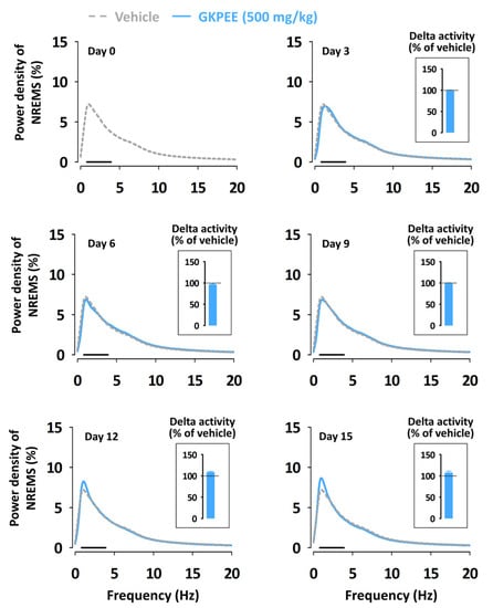 3.4. Effects of Sub-Chronic Administration of GKPEE on Sleep-Wake Profiles and Delta Activity