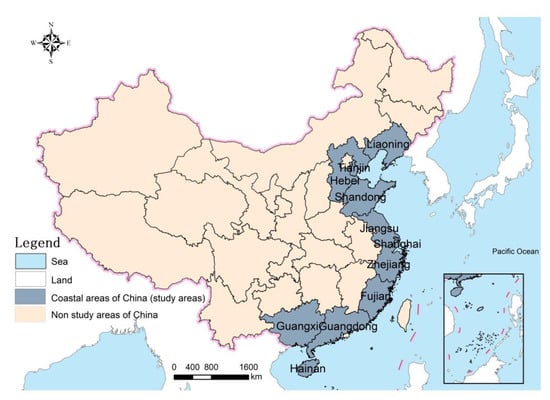Location map of China’s coastal areas.