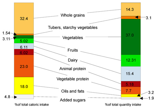 Caloric intake in relation to the amount of different food groups—authors own interpretation of data from [17].