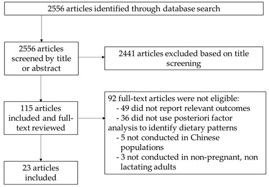 Jiang, K.; Zhang, Z.; Fullington, L.A.; Huang, T.T.; Kaliszewski, C.; Wei, J.; Zhao, L.; Huang, S.; Ellithorpe, A.; Wu, S.; et al. Dietary Patterns and Obesity in Chinese Adults: A Systematic Review and Meta-Analysis. Nutrients 2022, 14, 4911. https://doi.org/10.3390/nu14224911