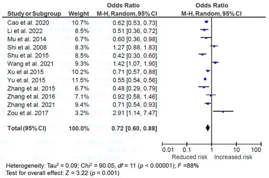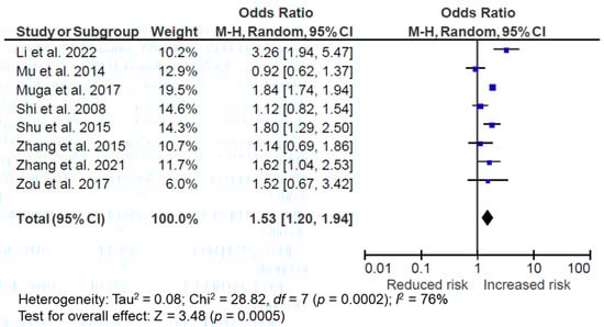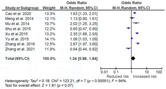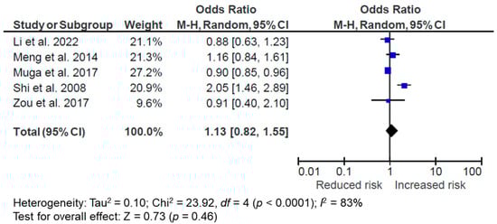 - Higgins, J.P.; Thompson, S.G.; Deeks, J.J.; Altman, D.G. Measuring inconsistency in meta-analyses. BMJ 2003, 327, 557–560. [Google Scholar] [CrossRef]