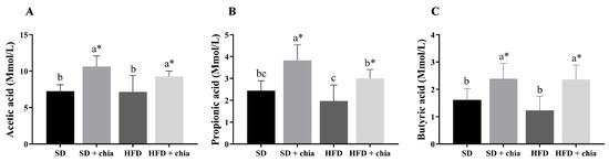 Mishima MDV, Da Silva BP, Gomes MJC, Toledo RCL, Mantovani HC, José VPBdS, Costa NMB, Tako E, Martino HSD. Effect of Chia (Salvia hispanica L.) Associated with High-Fat Diet on the Intestinal Health of Wistar Rats. Nutrients. 2022; 14(22):4924. https://doi.org/10.3390/nu14224924