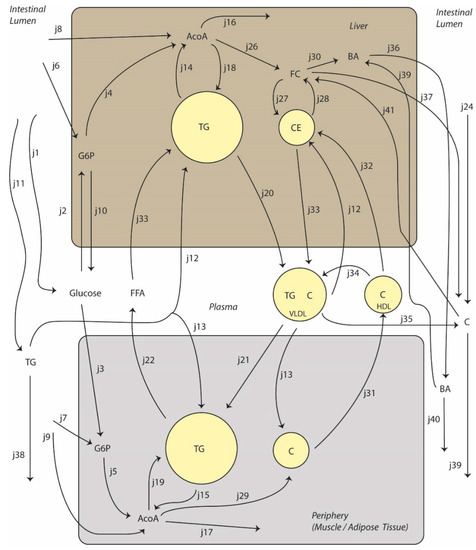 - Rozendaal, Y.J.W.; Wang, Y.; Paalvast, Y.; Tambyrajah, L.L.; Li, Z.; Van Dijk, K.W.; Rensen, P.C.N.; Kuivenhoven, J.A.; Groen, A.K.; Hilbers, P.A.J.; et al. In vivo and in silico dynamics of the development of Metabolic Syndrome. PLOS Comput. Biol. 2018, 14, e1006145. [Google Scholar] [CrossRef] [PubMed]