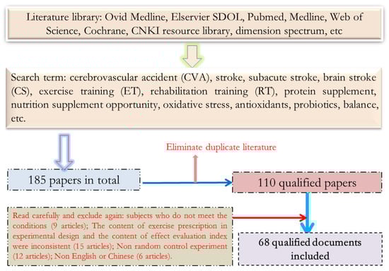 This paper systematically analyzes and reviews the latest literature. The authors used computers to search the domestic and foreign research paper databases (including PubMed, Medline, Web of Science, Cochrane, CNKI, and Weibo) from May 2000 to May 2022. The keywords used (including Chinese and English) mainly include: cerebrovascular accident (CVA), stroke, subacute stroke, brain stroke, exercise training, rehabilitation training, protein supplement, timing of nutritional supplement, oxidative stress, antioxidants, probiotics, and balance.