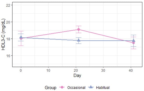 | HDL3-C, mg/dL Occ. vs. Hab. All | −1.6 (−3.2–0.09) | 0.06 | −1.6 (−3.2–0.04) | 0.056 | −1.6 (−2.7–[−0.4]) | 0.008 |